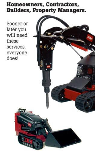 • Our DINGO operators can use this lifting boom for long reach lifting, loading or unloading trucks and trailers, raising and lowering long posts of any size into post holes for deck building, raising and setting beams vertically or horizontally and for light demolition. At only 34 1/2" wide, our operators can get these DINGOS into tight spaces to do heavy lifting jobs with this CRANE BOOM. We have rigging capabilities that can handle most object sizes and shapes to be lifted. For Dingo with operator needs, call Suburban Welding Company® at 703-765- 9344. Our vast DINGO attachments, coupled with our trained operators can save time and labor costs. Call Suburban Welding Company® at 703-765-9344 and we will tell you how we can speed up your project with our DINGO equipment and experienced operators.