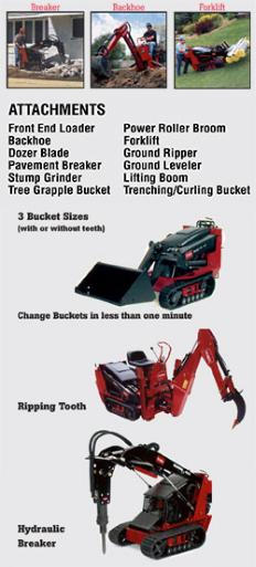 • Quick change to front end loading bucket for combination work - less than 1 minute to change attachments Click here to see photos!