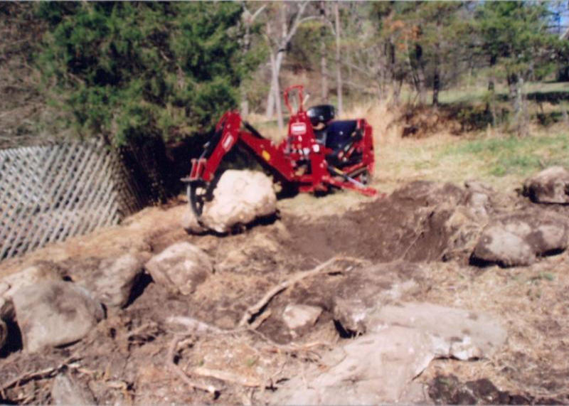 Large rocks, tree stumps, roots,