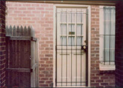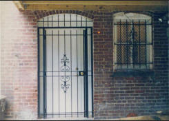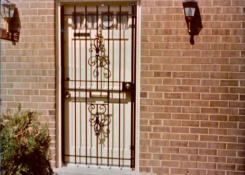 Door security gates, or door security guards, are a common way to provide security and ornamental ironwork to most doors. Choices of door security gates made and installed by Suburban Welding Company® include ornamental iron door security gates, wrought iron door security gates, decorative door security gates, door burglar bars, glass guards and door security bars. In addition to providing a measure of security, door security gates can also compliment other ornamental ironwork on a building or home. Patio door security gates for sliding patio doors and French door security gates are also offered by Suburban Welding Company®, as well as a full line of ornamental ironwork, ironwork repairs and welding services.